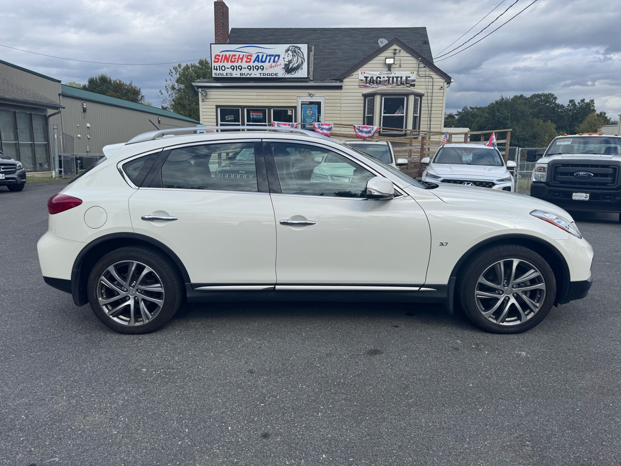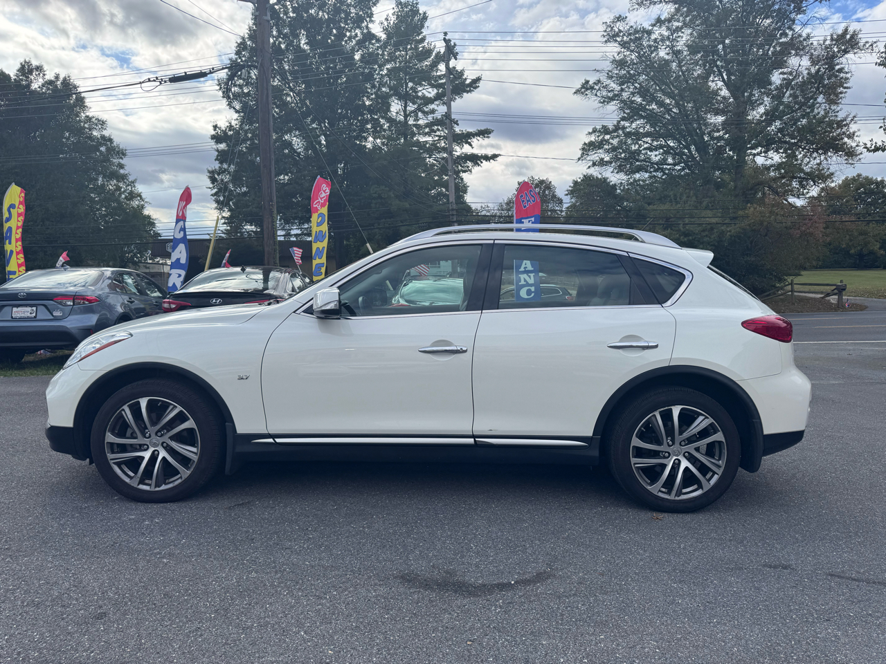 Swing into style and luxury with this sleek White 2016 Infiniti QX50! This beauty is not just a car, it's a lifestyle. With top-notch safety features like Child Safety Door Locks and ABS Brakes, you can cruise with peace of mind knowing you're protected. The power door locks and keyless entry make every journey effortless, while the leather seats and separate climate controls ensure you ride in comfort and style. Telescopic steering and adjustable foot pedals cater to your every need, while the AM/FM radio and voice-activated telephone keep you connected on the go. Let the power sunroof and rear spoiler add some flair to your drive, turning heads wherever you roam. And don't forget - a Carfax report is available for this gem, so you can hit the road with confidence. With its alloy wheels and fog lights, this Infiniti QX50 is ready to take you on your next adventure in style!