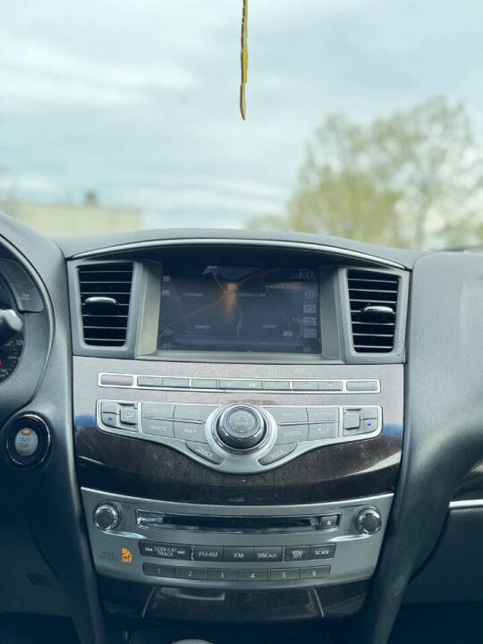 Step inside and enjoy the luxuriously appointed leather seats, with front heated seats for those chilly mornings. The power sunroof lets in the sunshine while the separate climate controls keep everyone comfortable. Jam out to your favorite tunes with the CD player and take advantage of the convenient steering wheel mounted controls for a seamless driving experience. With a Carfax report available, you can trust in the quality and reliability of this exceptional vehicle. Don't miss out on the opportunity to make this amazing Infiniti QX60 yours today!